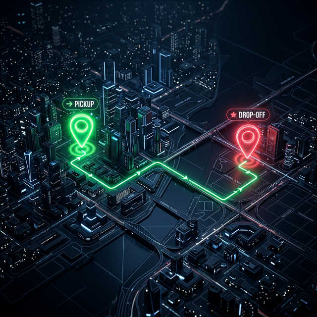 Passengers pin exact GPS pickup and drop-off points on a map. Driver sees both pins before accepting the request.
